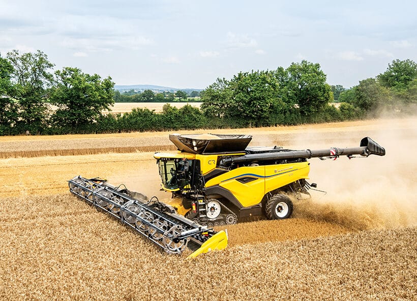 The New Holland CR combine range is now topped by the recently introduced CR11 (775hp, 20,000-litre/567-bushel tank capacity) and CR10 (634hp, 16,000-litre/454-bushel grain tank) models.